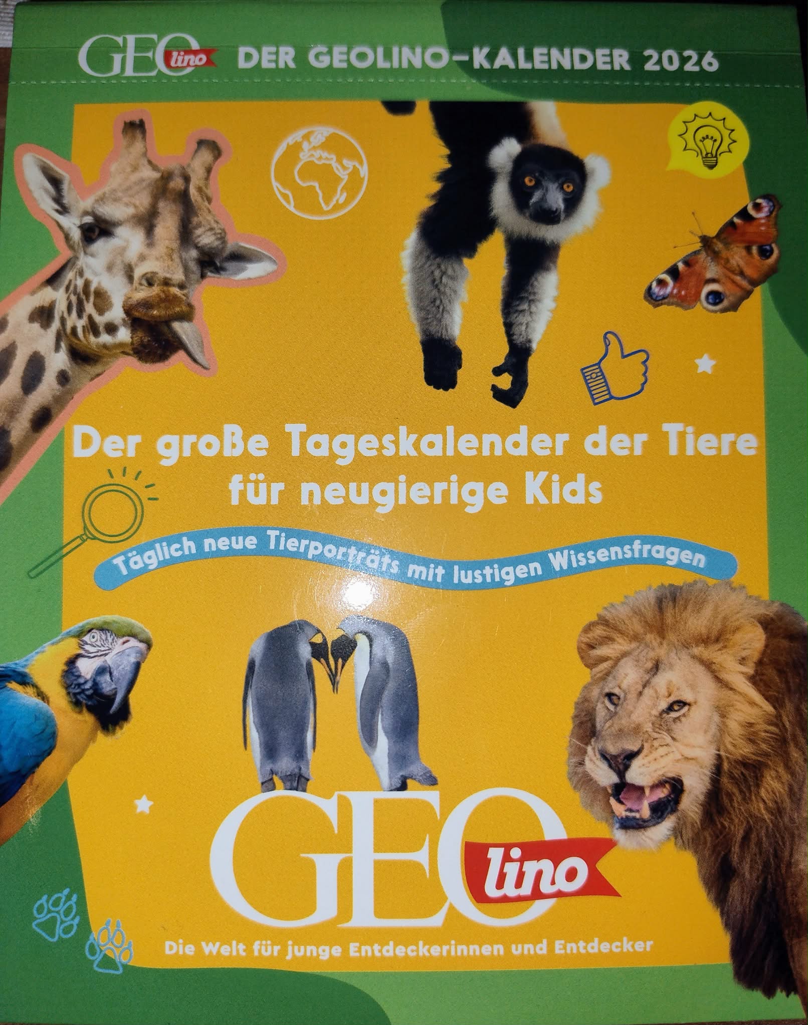 Für Tierbegeisterte, die Kalender rein für Informationen/Wissen mögen, ist der GEOlino-Kalender ideal.